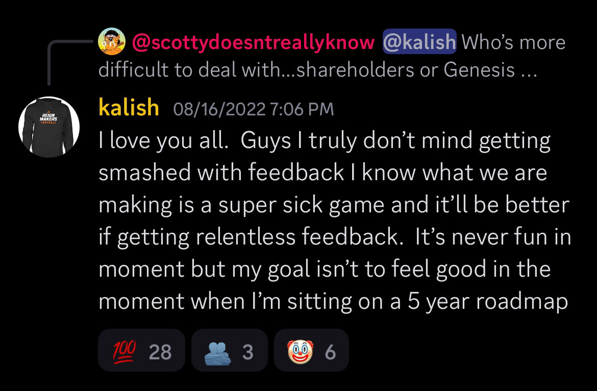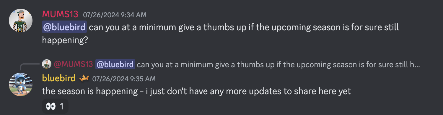 These are just a few of the dozens of excerpts from Draftkings' discord channels as well as personal text messages from DK representatives that confirmed there would be no shutdown of the game in the 2024-2025 seasons.