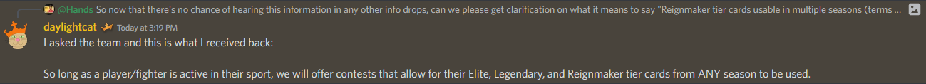 While you could debate a lot of things about the future of Draftkings and the Reignmakers game, it was clear that Draftkings never wavered on the future season plans for the game and the ongoing utility of the NFTs.