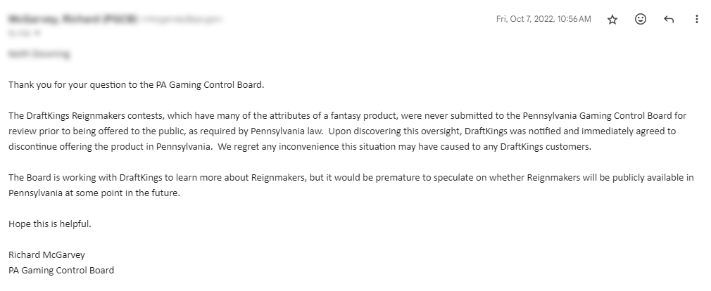 In early October 2022, Draftkings' players in Pennsylvania received shocking news as their Reignmakers game access was cutoff without notice.